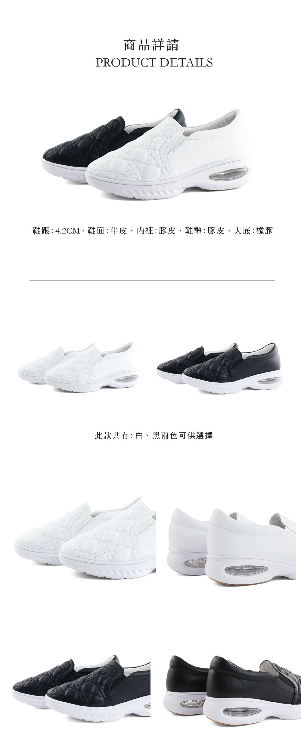 質感牛皮車菱格減壓氣墊輕量休閒鞋(白)(黑)124358