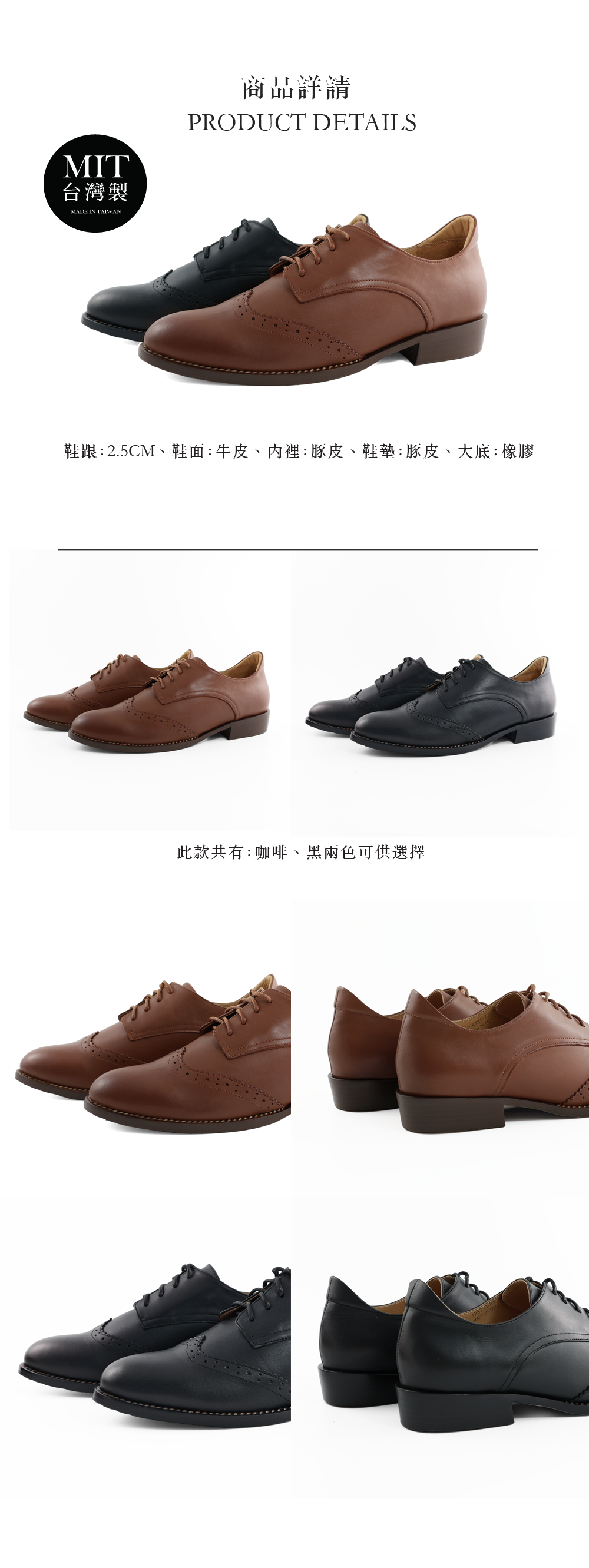台灣製MIT 英倫牛津綁帶擦色牛皮休閒學生低跟鞋(棕)(黑)125731