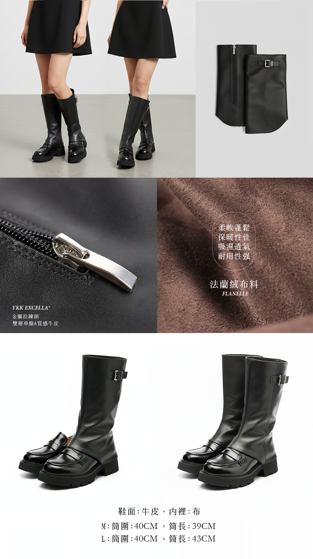 【一秒變長靴,自由搭配時尚加分】 獨家設計!!可拆式靴套,自由搭配任何鞋款,立馬變成時尚長靴 採用質感牛皮立體剪裁可調整並修飾腿部比例,內裡選用柔軟蓬鬆的法蘭絨布料,保暖度極佳、透氣舒適。